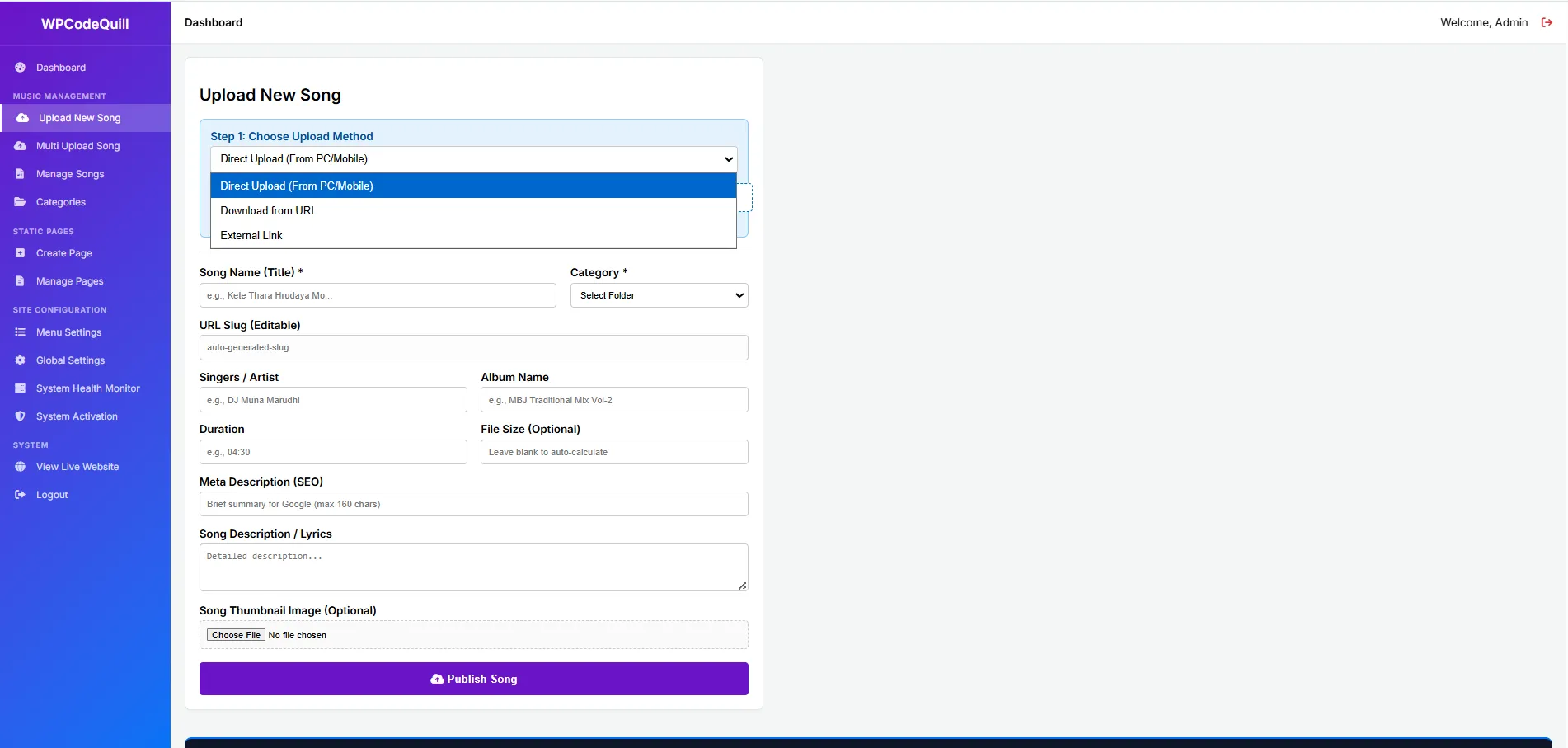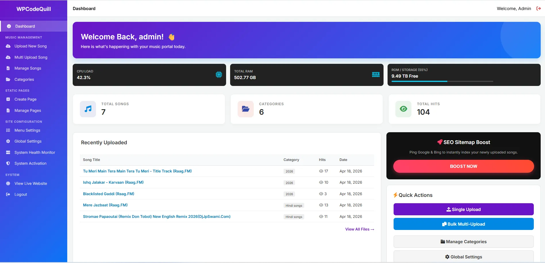 Perfect for Bollywood remixes, DJ tracks, regional music, or original content, the script is fully responsive, secure, and optimized for the best user experience across all devices.
