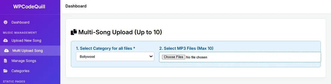 • ⚡ Smart Multi-Upload Engine (Upload up to 10 MP3 files with auto ID3 metadata)