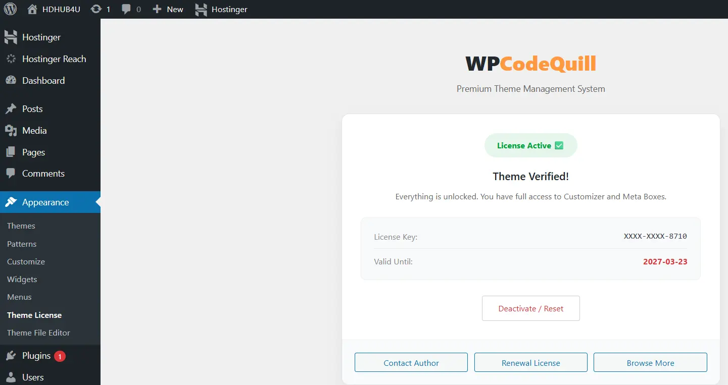 3. License Key: Navigate to the new Appearance > Theme License menu.