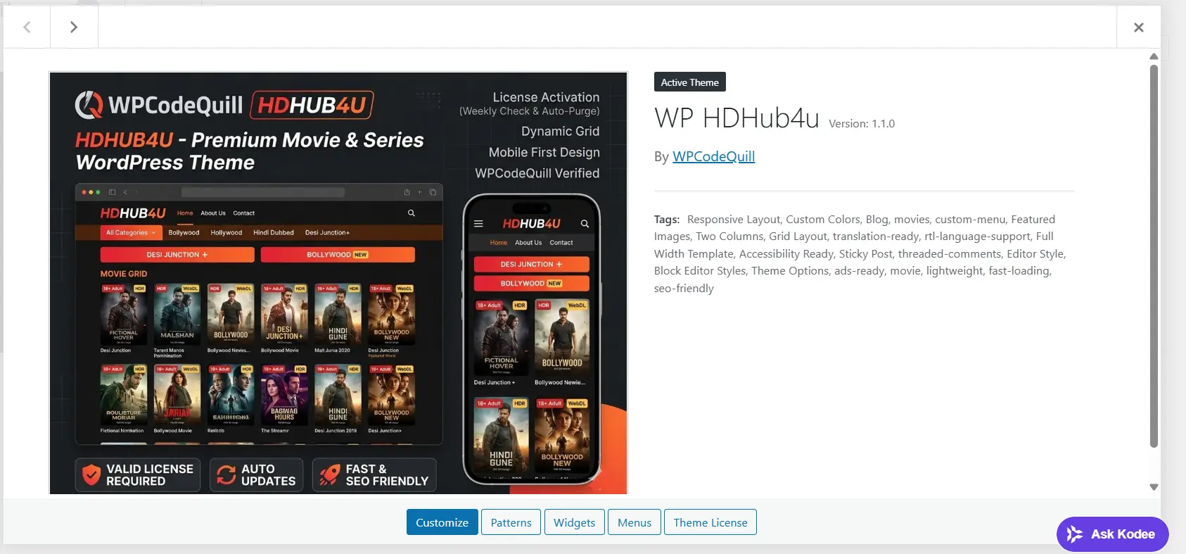 The ultimate solution for Movie Indexing and Streaming sites. HDHub4u is a lightweight, SEO-optimized, and mobile-first WordPress theme designed to replicate the premium experience of top movie portals. Featuring a smart random quality engine, automated meta boxes, and a secure weekly license verification system.